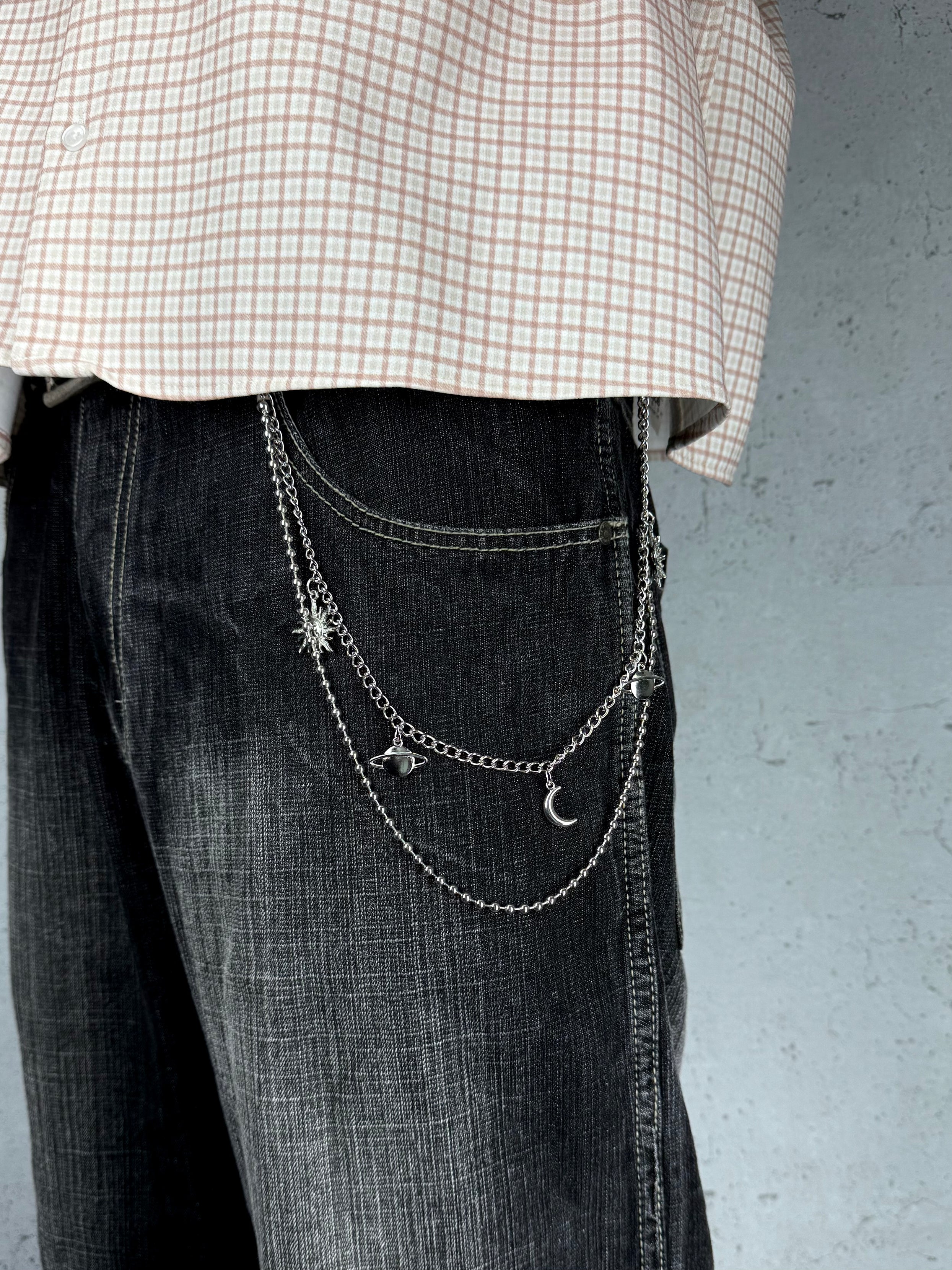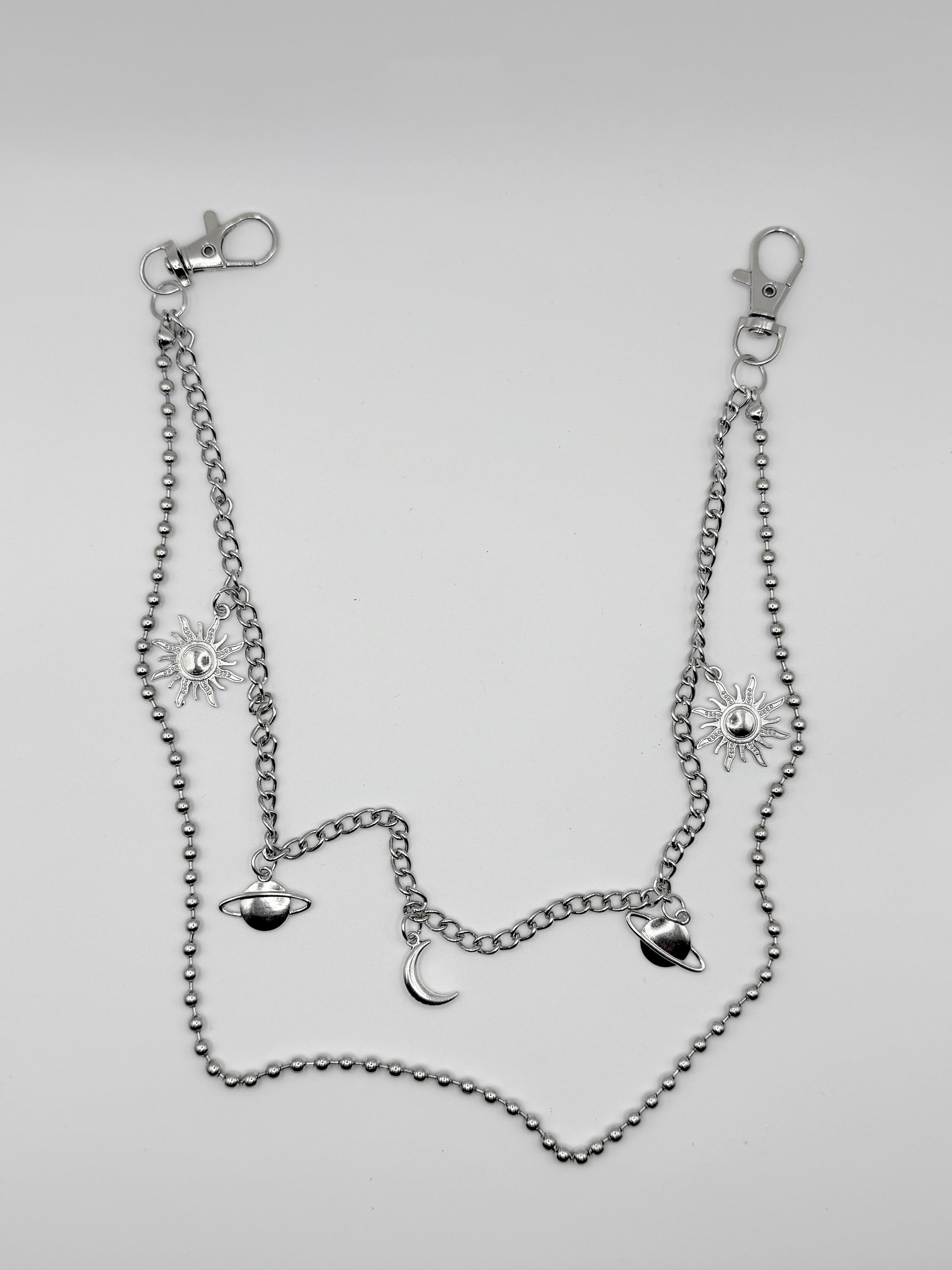 „Galaxy Chain“ Silber Hosenkette mit Sonne, Mond und Saturn Y2K Streetstyle