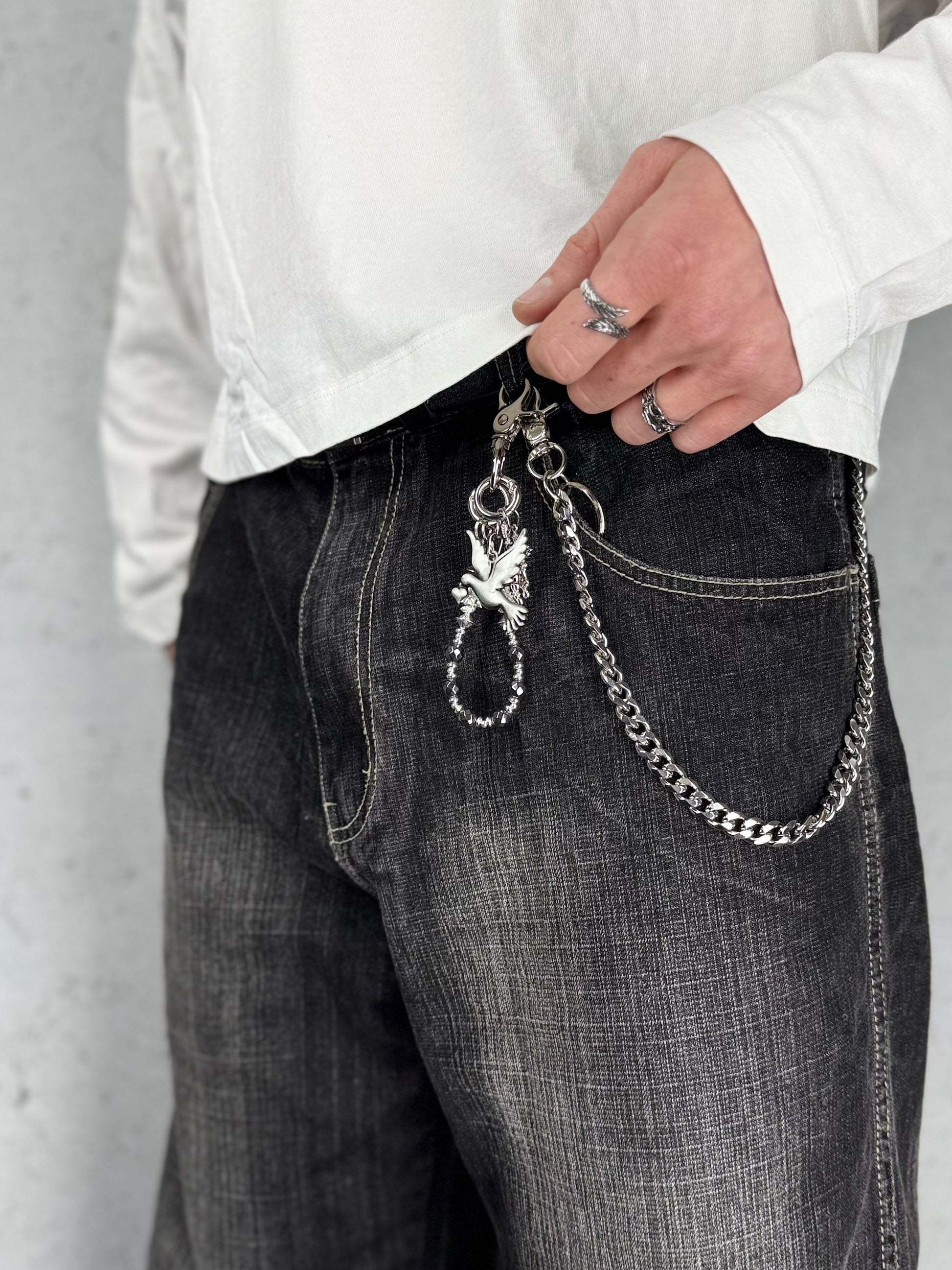 Y2K Silber Anhänger mit Perlen & Symbolen – Accessoire für Hosenkette, Tasche oder Schlüssel